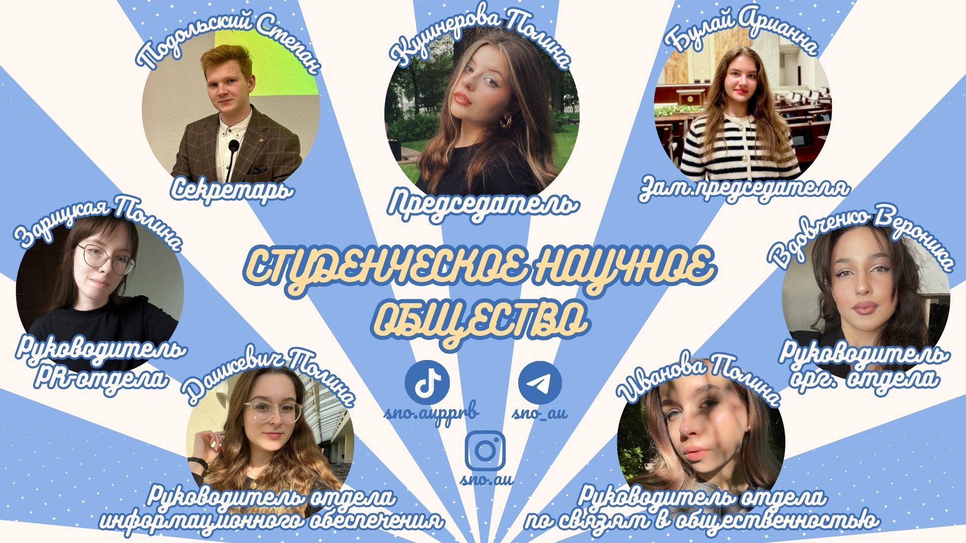 Контактные лица: Кушнерова Полина Павловна, председатель Совета СНО Академии управления, +375 (33) 113-41-50; Булай Арианна Сергеевна, заместитель председателя Совета СНО Академии управления, +375 (29) 892-94-44.