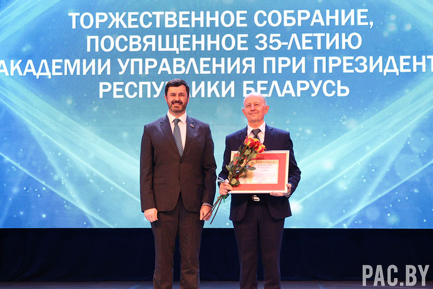 Vladimir Pertsov, First Deputy Head of the Administration of the President of the Republic of Belarus, congratulated the collective on the jubilee. He noted that the majority of executive personnel within the system of public administration are graduates and trainees of the Presidential Academy. Vladimir Pertsov emphasized that for the Presidential Administration, attending or undergoing retraining at the Academy of Public Administration is a particular hallmark of quality for any manager.