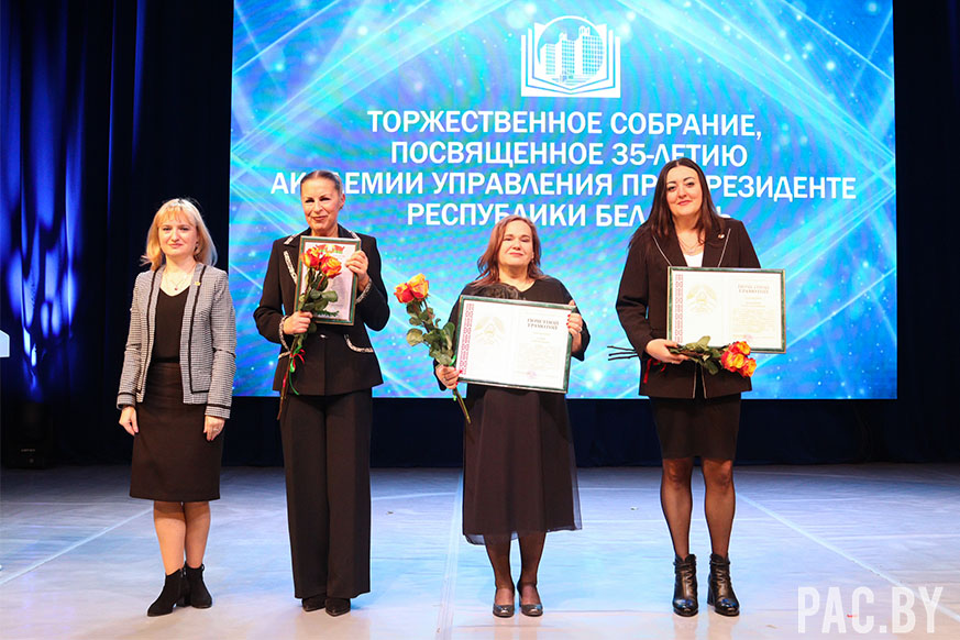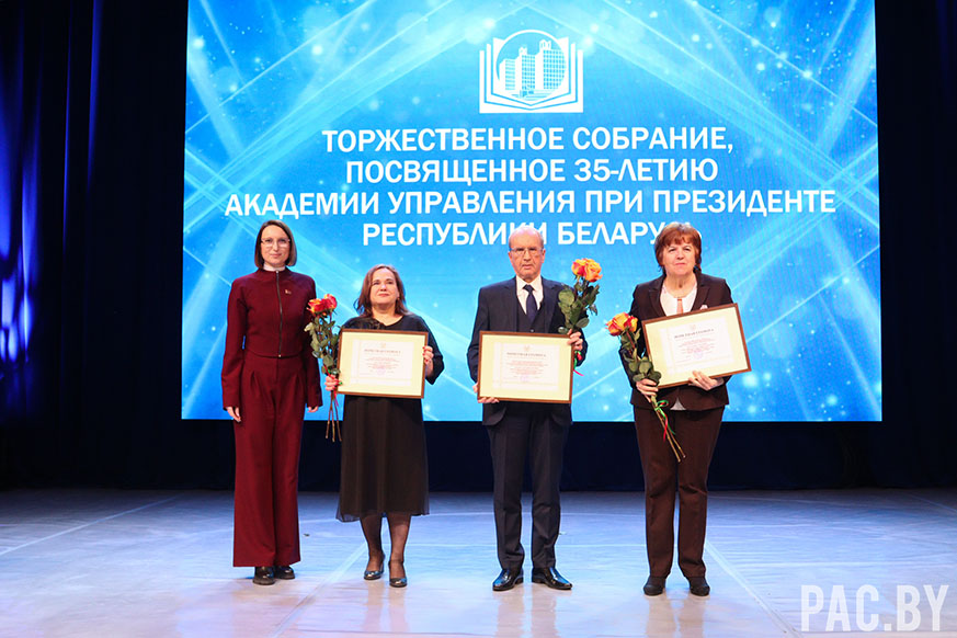 Throughout the celebratory event, over 50 Academy employees were honored with certificates of merit and letters of gratitude from representatives of 17 state administration bodies. Notably, all individuals who took the stage in the Small Hall of the Palace of the Republic are graduates of the Academy of Public Administration from various years. The celebration concluded with all attendees joining in unison to perform the Anthem of the Academy of Public Administration.