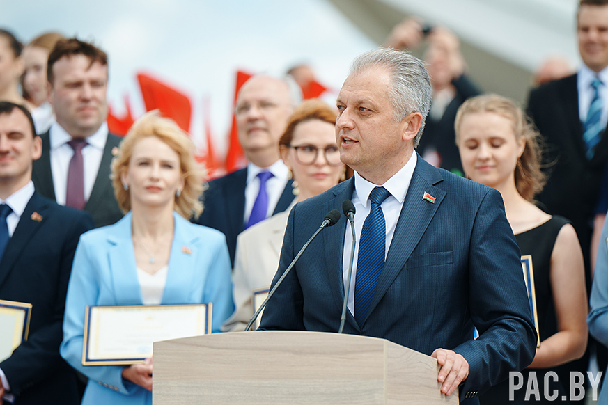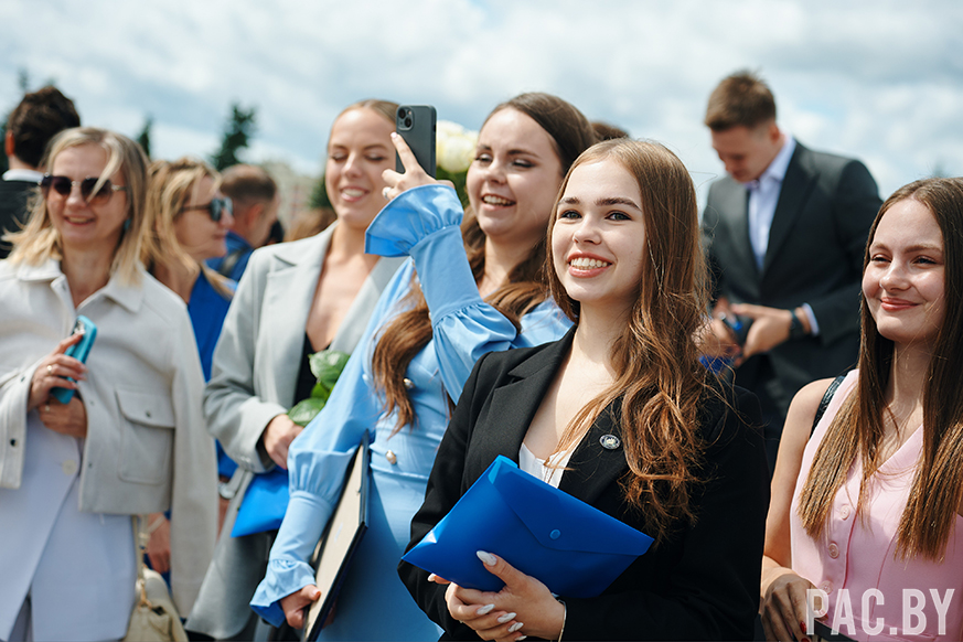 The joy of the holiday was shared with the graduates by honored guests. Among them are the leadership of the Administration of the President of the Republic of Belarus, the National Bank, the Central Electoral Commission, the Prosecutor General's Office, the Ministry of Education, the Ministry of Communications and Informatization, and other government agencies and organizations.