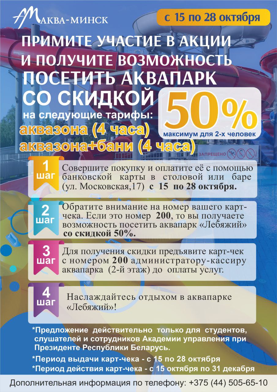 Прими участие в акции и получи возможность посетить аквапарк «Лебяжий» со скидкой 50%!