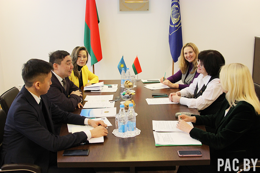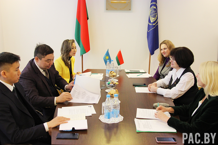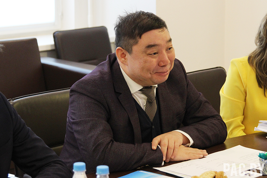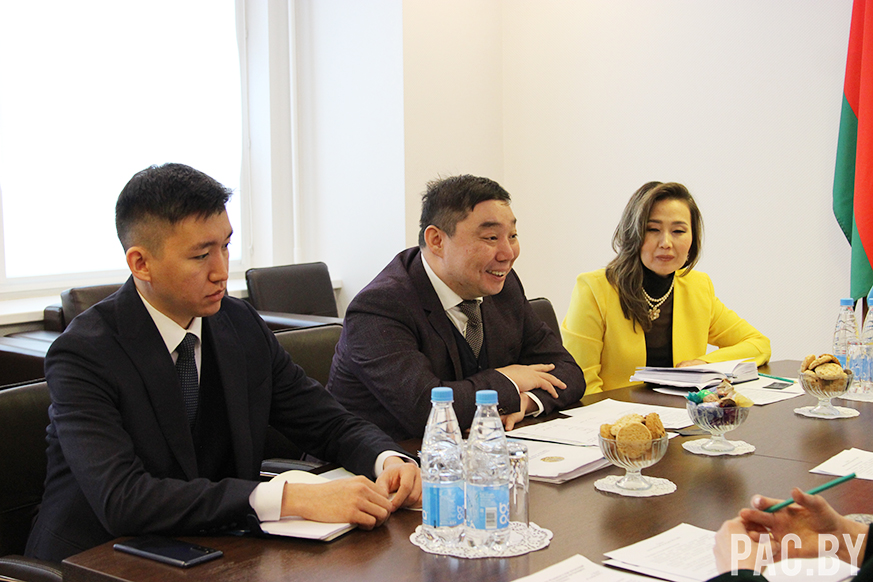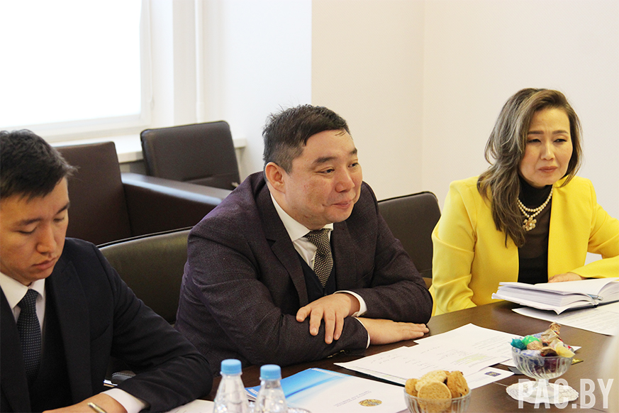 Со стороны гостей – начальник управления Центрального аппарата, оценки, повышения квалификации и мобилизационной работы Департамента человеческих ресурсов Министерства иностранных дел Республики Казахстан Даурен Досжанов, атташе Управления заграничного аппарата и международных организаций Департамента человеческих ресурсов Министерства иностранных дел Республики Казахстан Алиби Жензаков и первый секретарь Посольства Республики Казахстан в Республике Беларусь Манар Усенова.