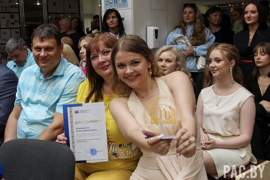 В свою очередь выпускники Екатерина Борко, Егор Брейво, Ксения Брыкун и Валерия Шахович поблагодарили администрацию, профессорско-преподавательский состав и работников Академии управления за переданный опыт, профессионализм, понимание и доброе отношение, а также родителей за заботу.