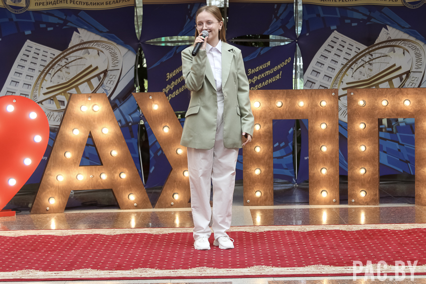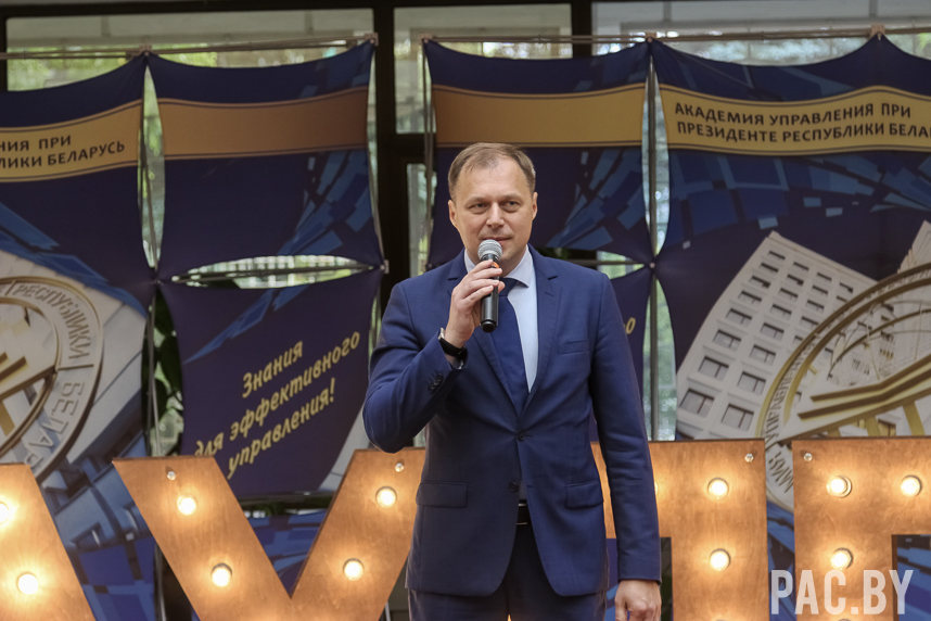 Со словами напутствия к выпускникам обратился ректор Академии управления Вячеслав Данилович: «Шаноўныя выпускнікі, сардэчна віншую вас з паспяховым заканчэннем навучання ў Акадэміі кіравання пры Прэзідэнце Рэспублікі Беларусь. Віншую з тым, што, нягледзячы на разнастайныя цяжкасці і складанасці, вы дасягнулі пастаўленай мэты, атрымалі найкаштоўнейшы вопыт і неабходныя веды ў абранай вамі сферы прафесійнай дзейнасці. Сёння вы ўступаеце ў самастойнае, дарослае жыццё. Рухаючыся па жыццеваму шляху, не забывайце аб тым, што шчасце чалавека – гэта стан яго душы. Таму жадаю вам духойна ўдасканальвацца, праяўляць свае лепшыя чалавечыя якасці, не паддавацца эмоцыям і эгаістычным жаданням, прыносіць рэяльную карысць грамадству і дзяржаве. Не забывайце выкладчыкаў, якія дзяліліся з вамі сваімі ведамі, не забывайце аднакурснікаў, з якімі вы разам навучаліся, і канешне Акадэмію кіравання, у якой вас заўсёды рады бачыць. Жадаю кожнаму з вас здароўя, шчасця, дабрабыту, плённай працы. І самае галоўнае – у любых выпадках заставацца годнымі высокага звання выпускніка Академіі кіравання пры Прэзідэнце Рэспублікі Беларусь».