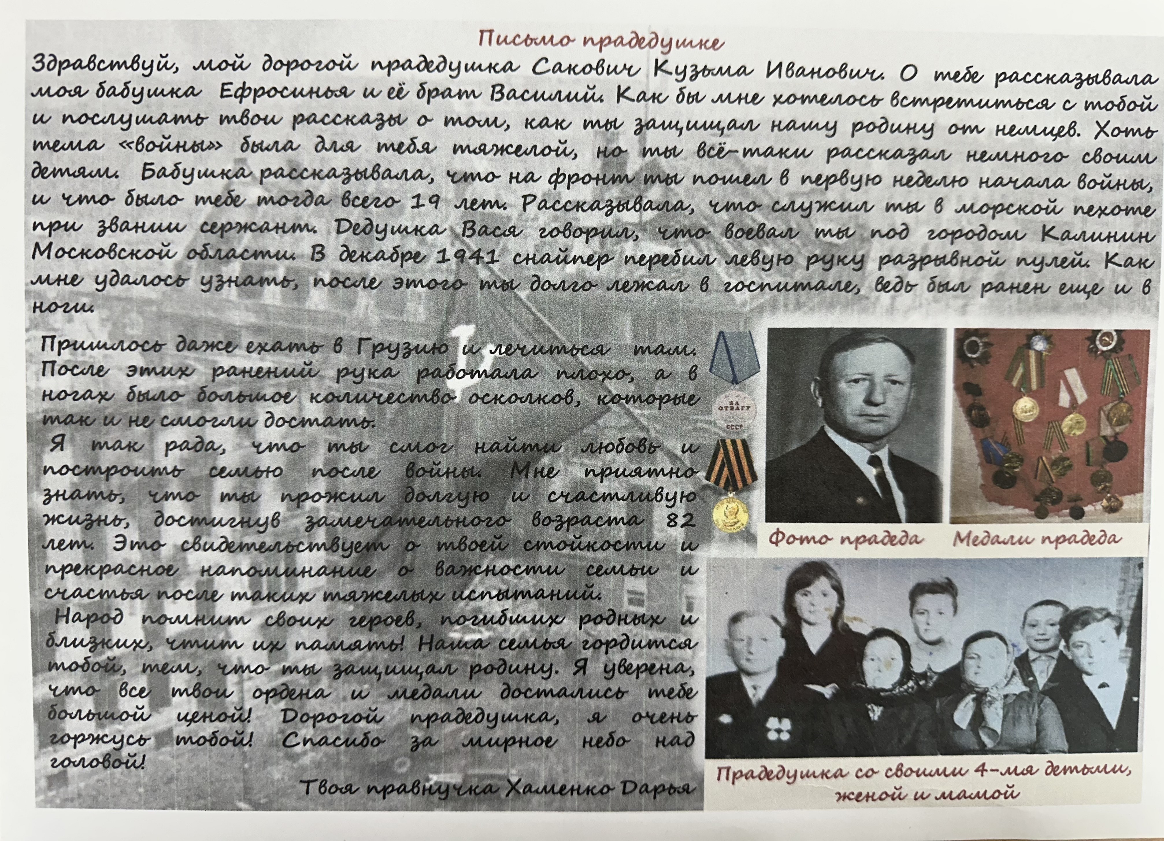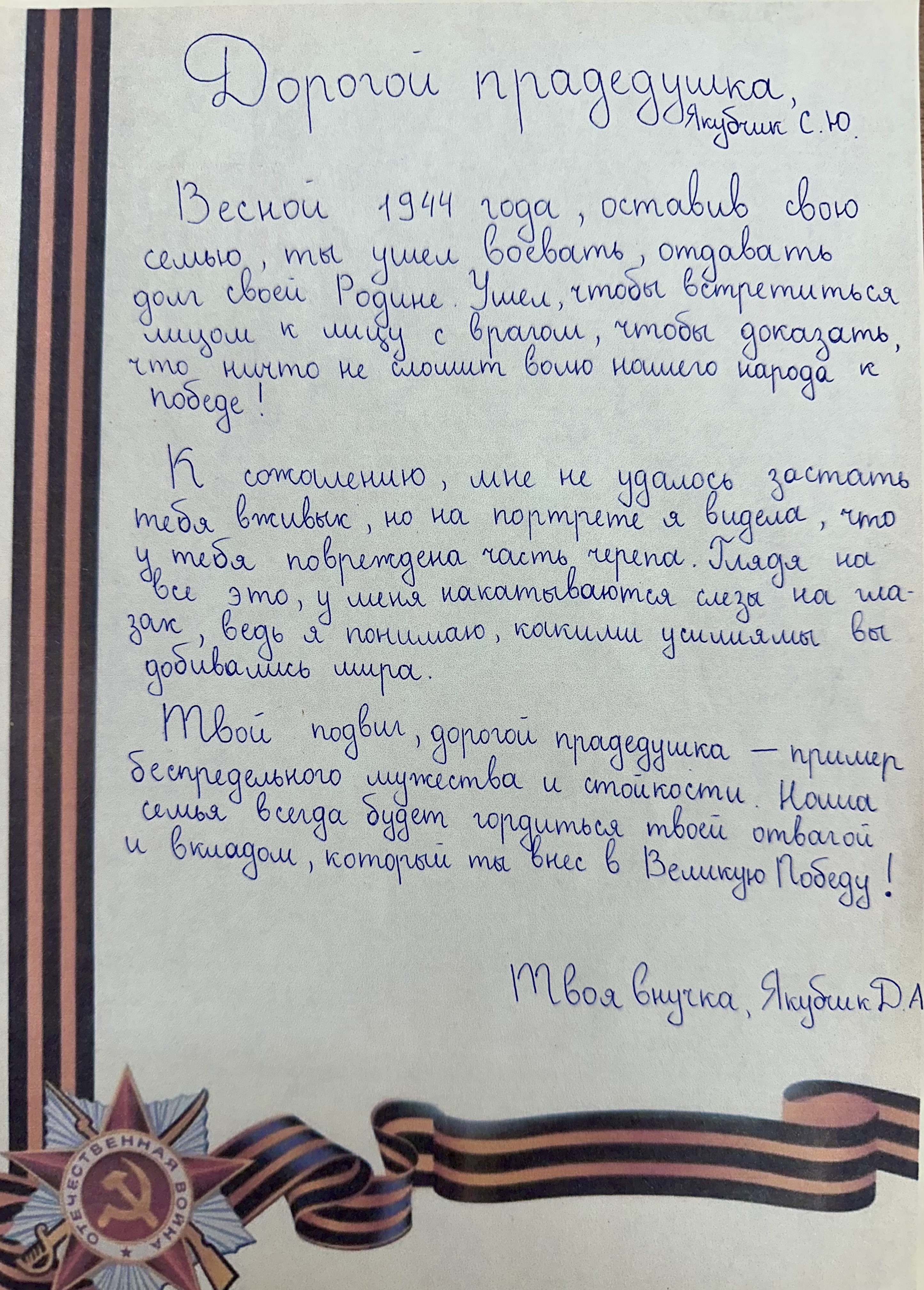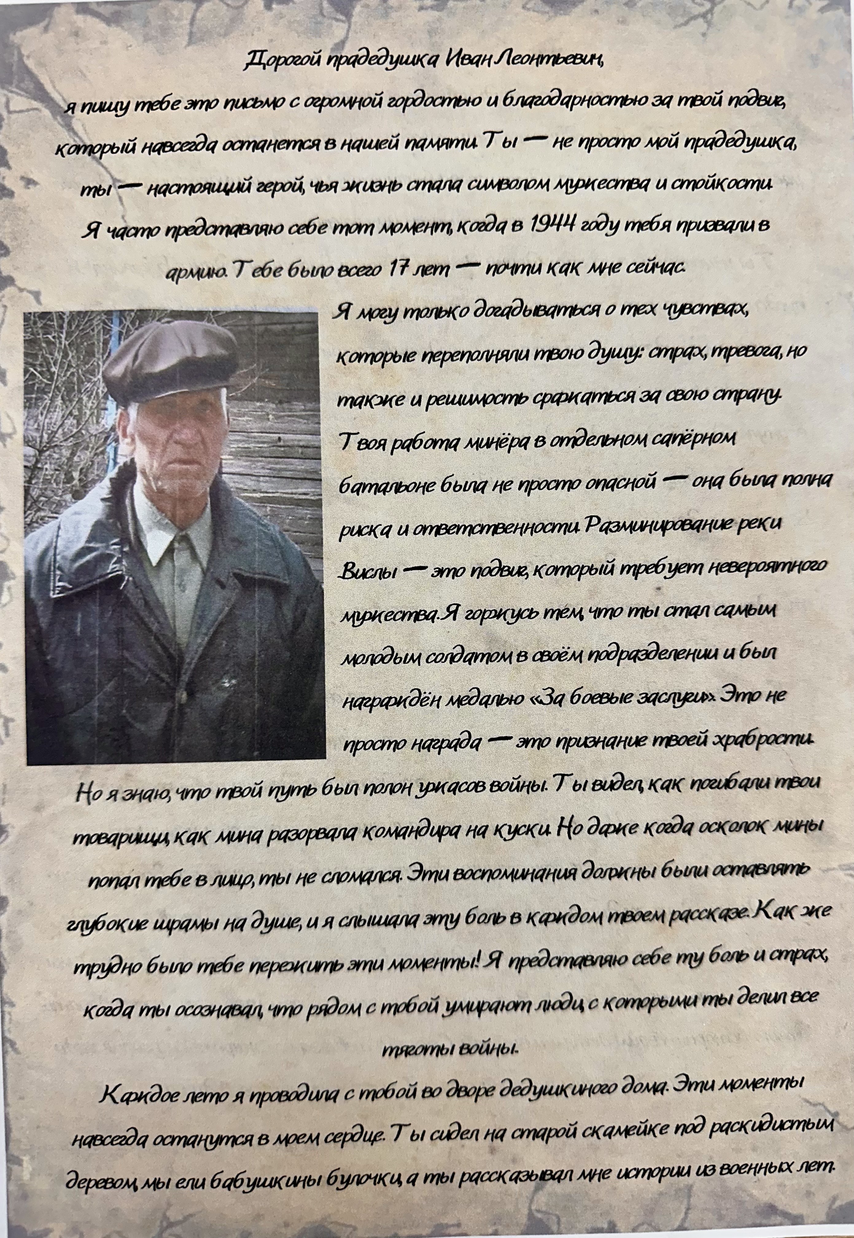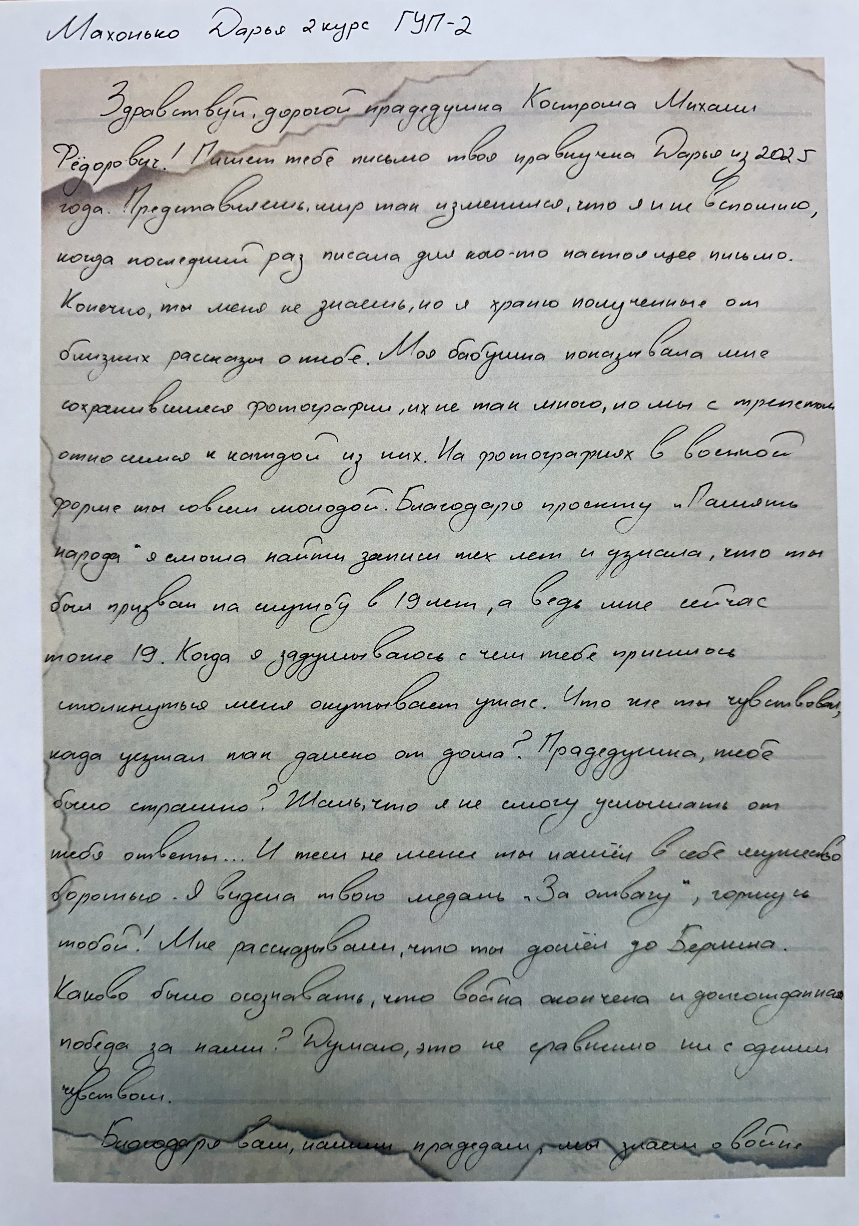 Совсем недавно в Президентской Академии прошел республиканский конкурс «Письмо прадеду», в рамках которого студенты писали письма-послания своим прадедам, участникам Великой Отечественной войны, выражая благодарность за мирное небо и размышляя о том, какой вклад современные молодые люди могут внести в развитие своей страны. Эти трогательные послания, наполненные гордостью и уважением к истории, – в нашем материале.