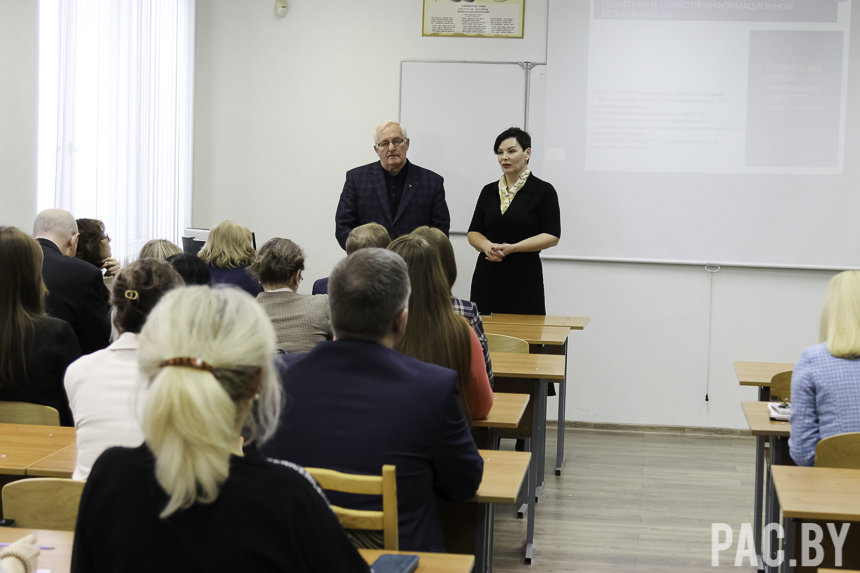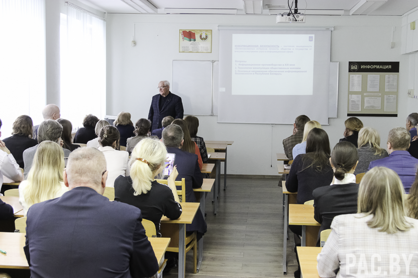 В рамках встречи он обсудил с присутствующими информационное противоборство в XXI веке, а также рассказал об основных направлениях обеспечения информационной безопасности в Республике Беларусь и технологиях манипулирования общественным сознанием.