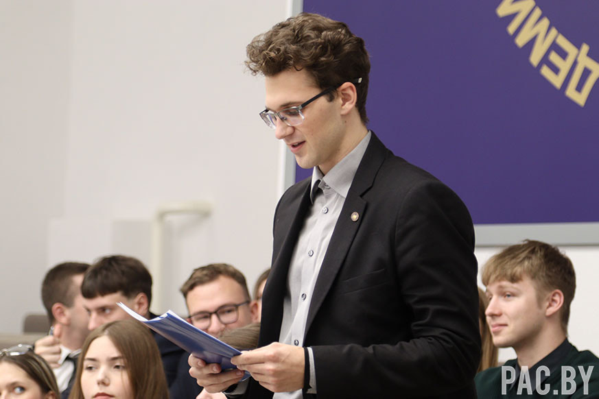 О работе профсоюзного комитета за период с 16 октября 2024 года по 5 ноября 2025 года доложил Иван Волчок. Он отметил, что на учете в первичной профсоюзной организации студентов Академии управления при Президенте Республики Беларусь состоит 971 человек, что составляет 99,5% от всего числа студентов.
