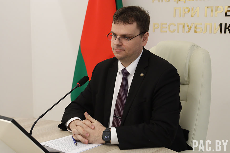 С докладом «Опыт Ставки Верховного главнокомандующего по организации гражданского управления на театре военных действий в период Первой мировой войны (1914–1918 гг.)» выступил советник Академии управления при Президенте Республики Беларусь Антон Синковец.