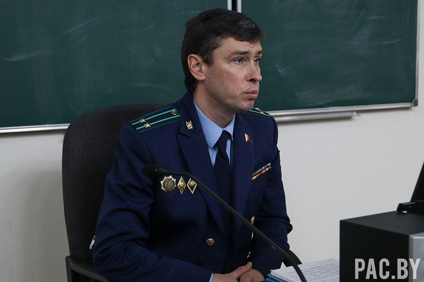 Старший прокурор управления Генеральной прокуратуры Республики Беларусь по надзору за исполнением законодательства на транспорте и таможенных органах Сергей Трубчик выступил с открытой лекцией перед слушателями Института государственной службы.