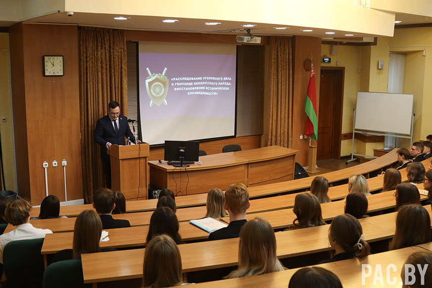 В Академии управления прошла диалоговая площадка с участием заместителя прокурора Борисовского района Минской области Дмитрия Мандрика, посвящённая расследованию уголовного дела о геноциде белорусского народа и важности хранения исторической памяти.