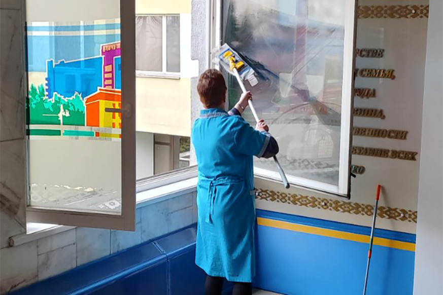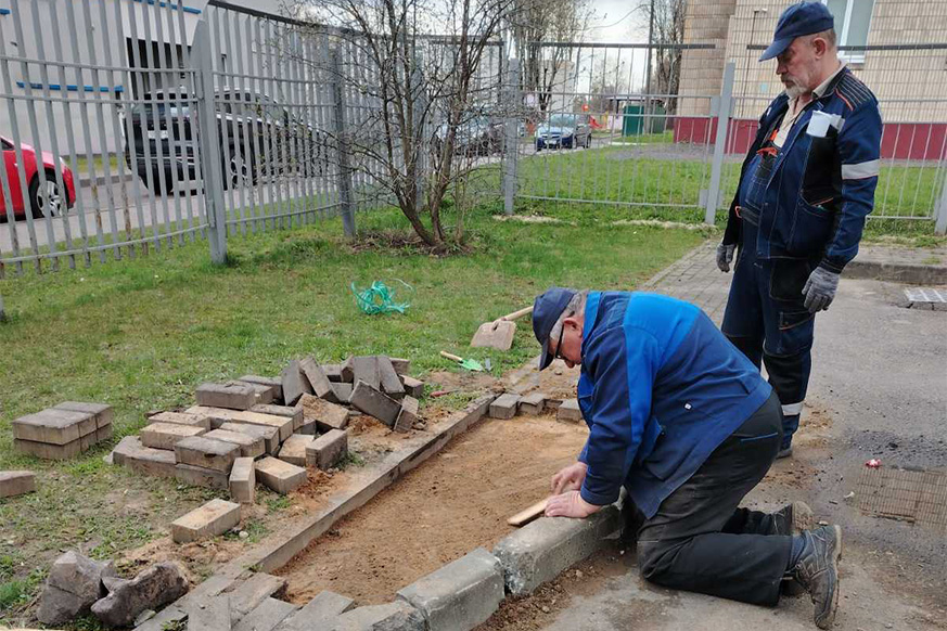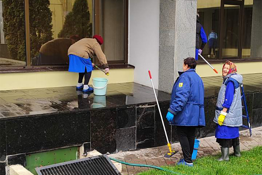 Работники Академии управления трудятся и на местах. В порядок после зимы приводят учебные корпуса. Также благоустраивают территории рядом со зданиями.