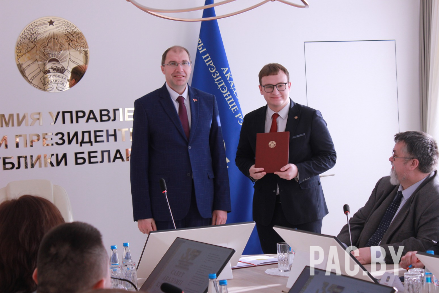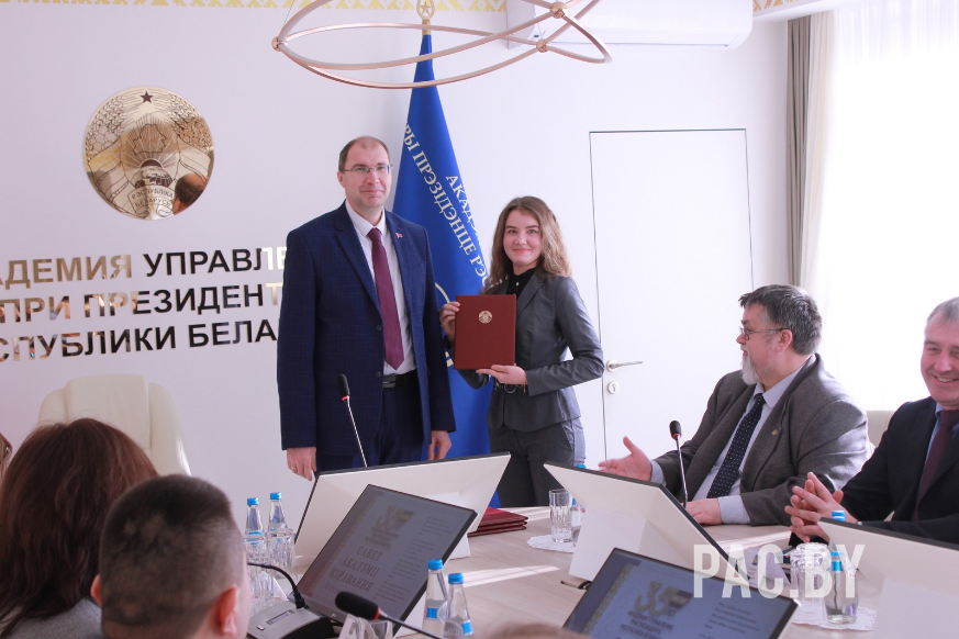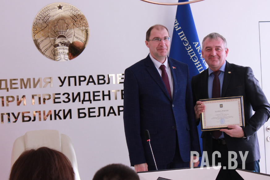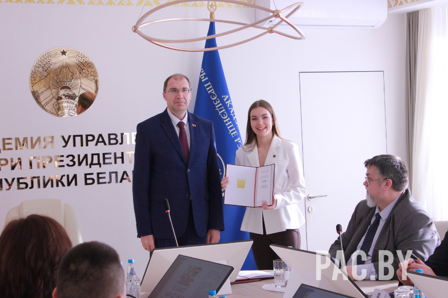 Четырем студентам были вручены свидетельства о назначении степендии специального фонда Президента Республики Беларусь по социальной поддержке одаренных учащихся и студентов. Также работники Академии управления были награждены благодарностями.