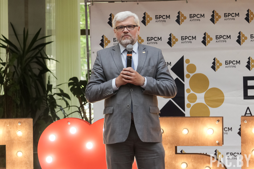 С приветственным словом к присутствующим обратился ректор Академии управления Вячеслав Данилович: «Перш за ўсё хачу падзякаваць камітэту «БРСМ» за актыўную працу па выхаванні перспектыўных, лепшых якасцяў нашай моладзі. «Беларускі рэспубліканскі саюз моладзі» мае багатую гісторыю і з’яўляецца пераемнікам слаўных традыцый камсамола Савецкай Беларусі, а гэта вельмі істотны момант, таму што за плячыма нашай моладзі, якая знаходзіцца ў шчэрагах «БРСМ», існуюць традыцыі нашых продкаў. У вас з’яўляецца выдатная магчымасць для развіцця сяброўскіх стасункаў, набыцця каштоўнага вопыту ў дзейнасці грамадства і дзяржавы, а таксама ўдзелу ў арганізацыі разнастайных мерапрыемстваў».