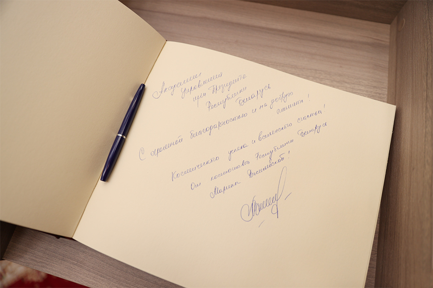 – Я хотела бы посетить все государственные организации, потому что есть очень много предложений, и все рады были бы меня увидеть. Для меня это большая честь. Я счастлива быть на Родине и делиться опытом. Для меня символично, что сегодня я нахожусь в Академии управления, поскольку я патриот своей страны и люблю своих людей. Для меня важно быть здесь со студентами, с руководством учебного заведения и делиться своим счастьем, рассказывать о том, что я увидела. Также в планах издать свою книгу на космическую тематику, – подчеркнула Марина Василевская.