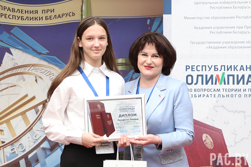 Также обратились к участникам республиканской олимпиады ректор государственного учреждения образования «Академия образования» Ирина Старовойтова и председатель Научно-экспертного совета при ЦИК, заместитель директора Национального центра законодательства и правовых исследований Елена Семашко.