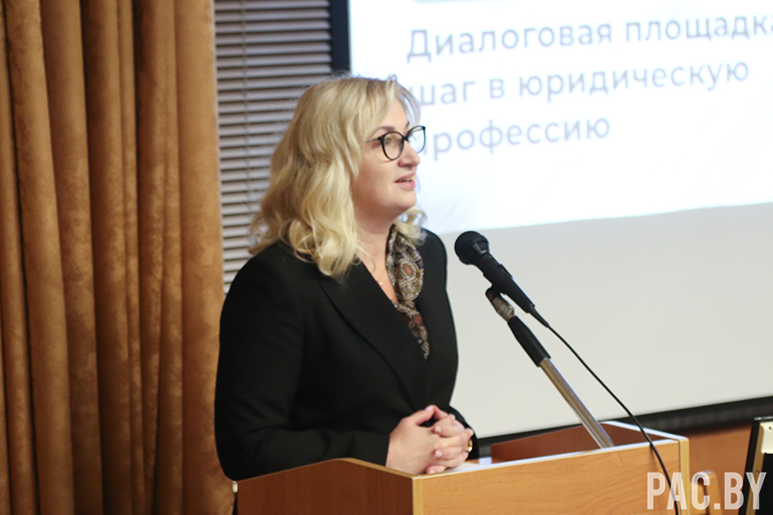 В работе диалоговой площадки приняли участие представители различных сфер юридической профессии: Екатерина Жинько, заместитель начальника главного управления по взаимоотношениям с органами законодательной и судебной власти, вопросам гражданства и помилования – начальник управления по взаимоотношениям с органами законодательной и судебной власти Администрации Президента Республики Беларусь; Валентин Вердыш, первый заместитель председателя Минского областного суда; Инна Леус, начальник управления Единого государственного регистра юридических лиц и индивидуальных предпринимателей Министерства юстиции Республики Беларусь; Татьяна Лисок, заместитель Председателя Белорусской нотариальной палаты; Иван Судникович, заместитель начальника главного управления цифрового развития предварительного следствия центрального аппарата Следственного комитета Республики Беларусь. В ходе мероприятия участники диалоговой площадки рассмотрели особенности работы по различным направлениям юридической деятельности, приглашенные юристы дали ориентиры обучающимся по выбору дальнейшей профессии.