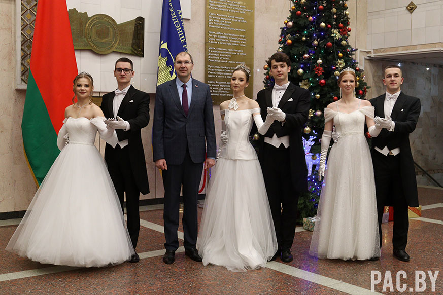 Слова напутствия участникам торжества во Дворце Независимости высказал ректор Академии управления Денис Дук. Он подчеркнул, что Республиканский новогодний бал с участием Президента Беларуси Александра Лукашенко – это возрождение венских балов в лучших традициях. Денис Владимирович пожелал студентам ярких впечатлений, приятных эмоций и ощущений праздничной атмосферы. Также он выразил надежду, что это яркое событие уходящего года станет стартом для дальнейших достижений ребят в новом году.
