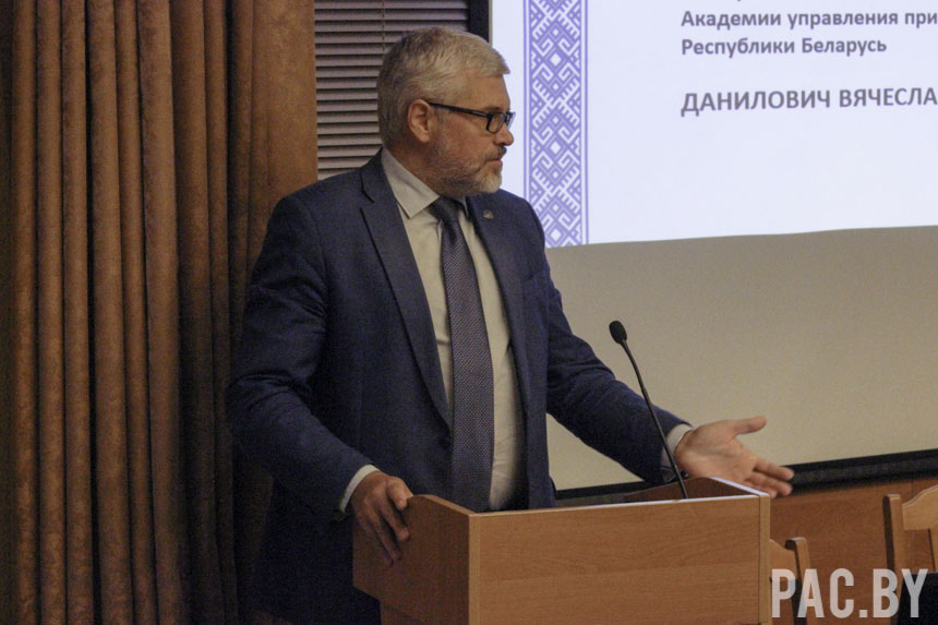 Ректор Академии управления обратился с приветственным словом к присутствующим: «Укрепление диалога и взаимного доверия между государством и обществом является одним из приоритетов социально-экономического развития Республики Беларусь. Не случайно, В Академии управления, которая является основной площадкой для подготовки, переподготовки и повышения квалификации руководящих кадров, социологическим дисциплинам уделяется большое внимание. Мы активно сотрудничаем с исследовательскими структурами и самостоятельно проводим социологические опросы. Уверен, что сегодняшнее мероприятие внесет весомый вклад в повышение эффективности реализации государственной внутренней и внешней политики. Желаю всем участникам семинара продуктивной работы и плодотворной дискуссии».