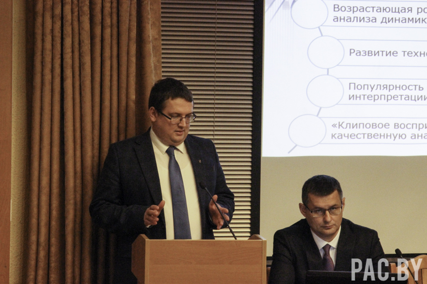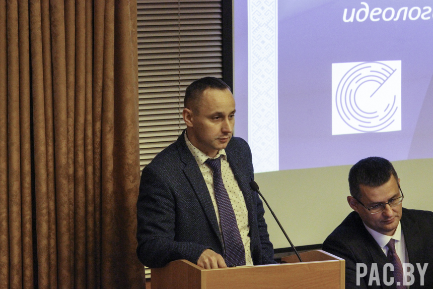 В завершении мероприятия круглый стол «Актуальные вопросы использования социологических данных в медиапространстве и идеологической работе» провел начальник отдела экономического анализа БИСИ Валентин Старичёнок.